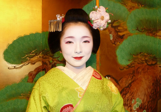 I normally prefer the natural look but this young lady looks exquisite and the green kimono is as mesmerising and beautiful as her face.